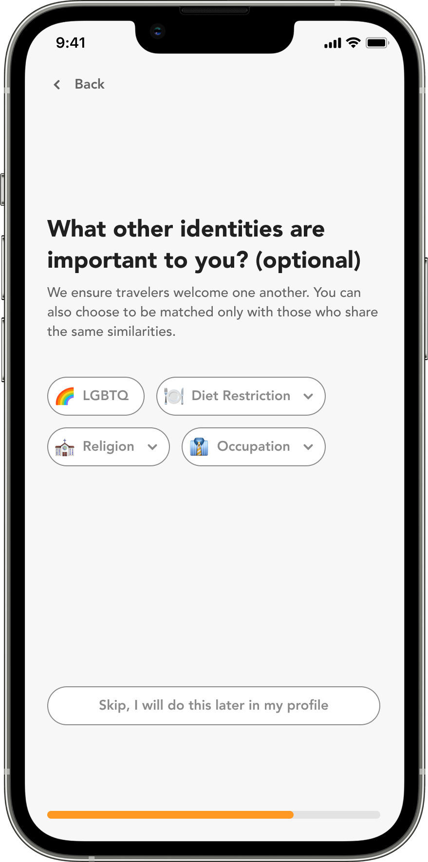 I informed users all the benefits from filling out the information, and have them learn the core value of hapybara as working on the series of tasks. To further reduce friction, I always keep "skip" option for not-mandatory tasks