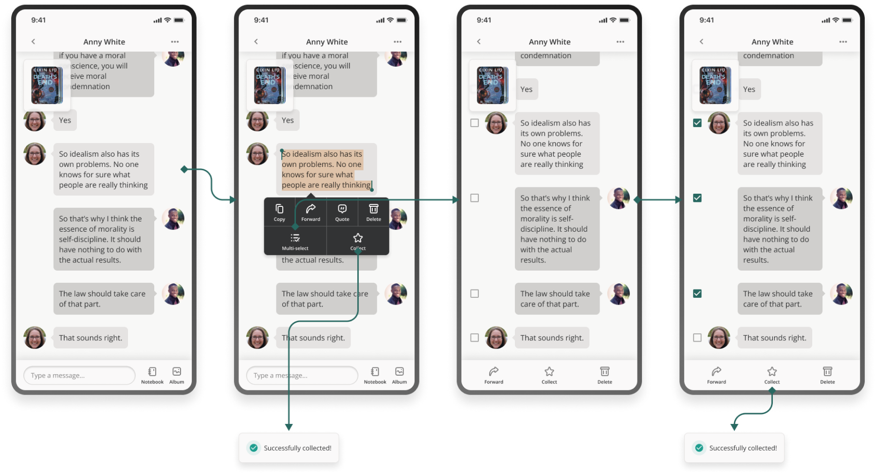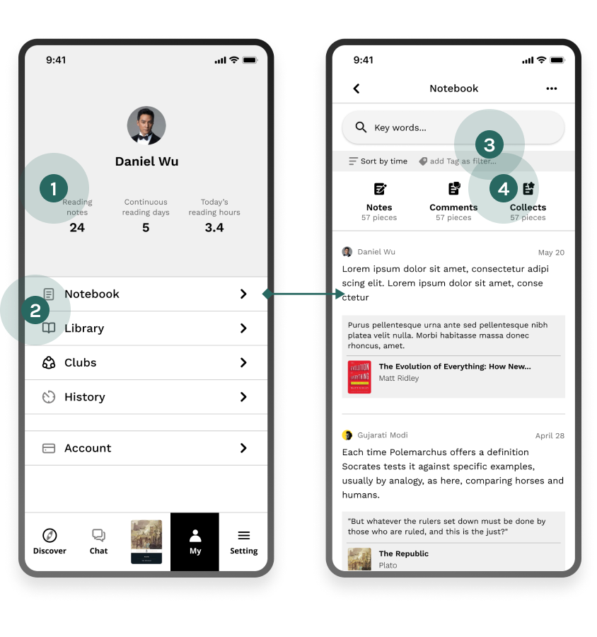 Earlier research have shown that many people are frustrated about worse comprehension and being easy to forget what's been read. Therefore the notebook feature is important. In Reapal, users are able to keep track of all the histories, and review all the annotations and discussions in different manageable orders.