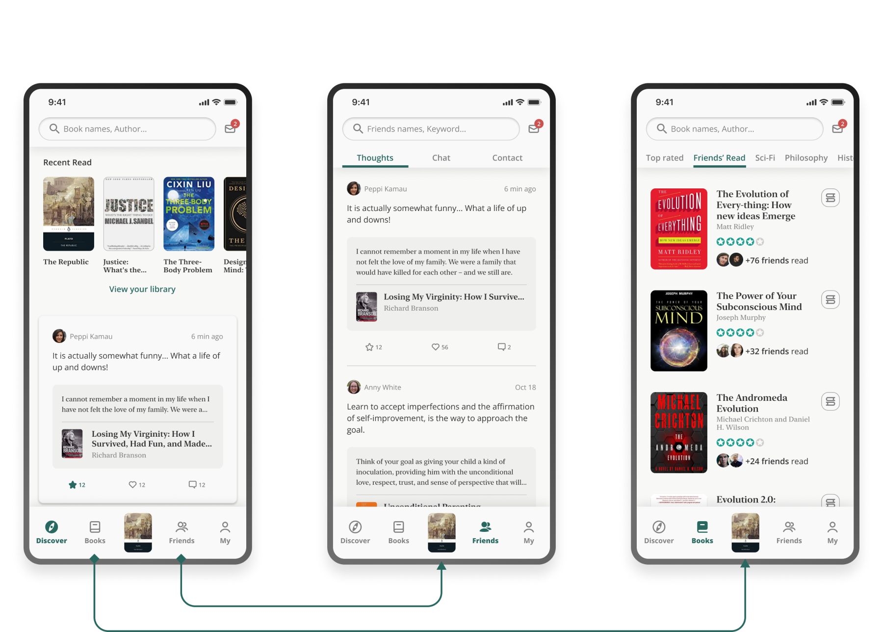 Re-structure the navigation bar to clearly demonstrate the “Reading with friends” idea.