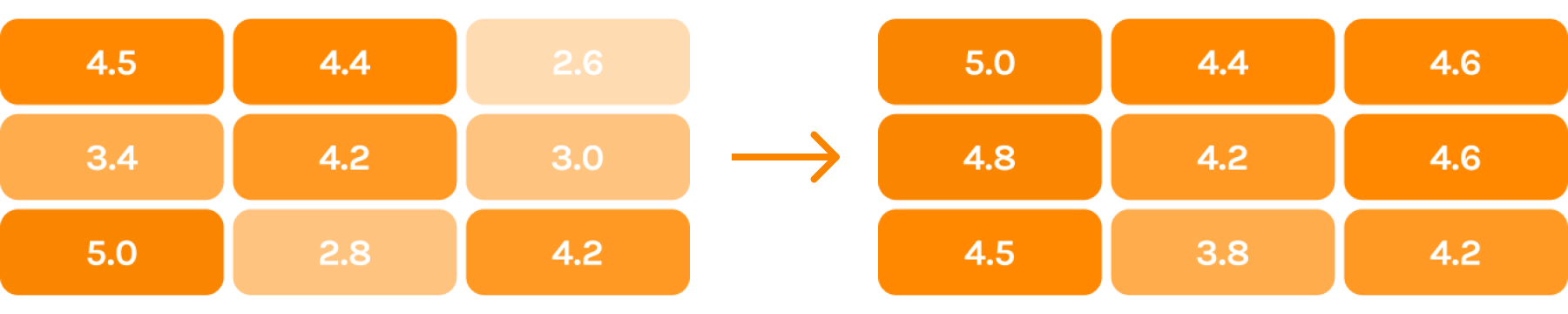 Data collected from review is used to improve group matching function overtime