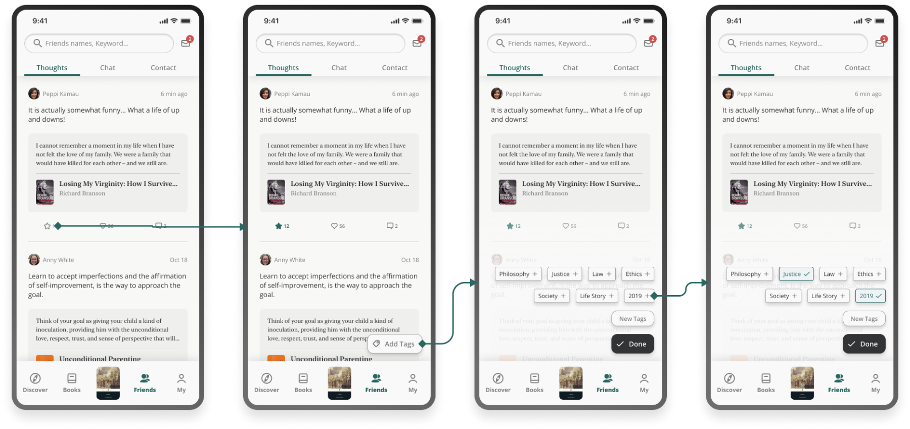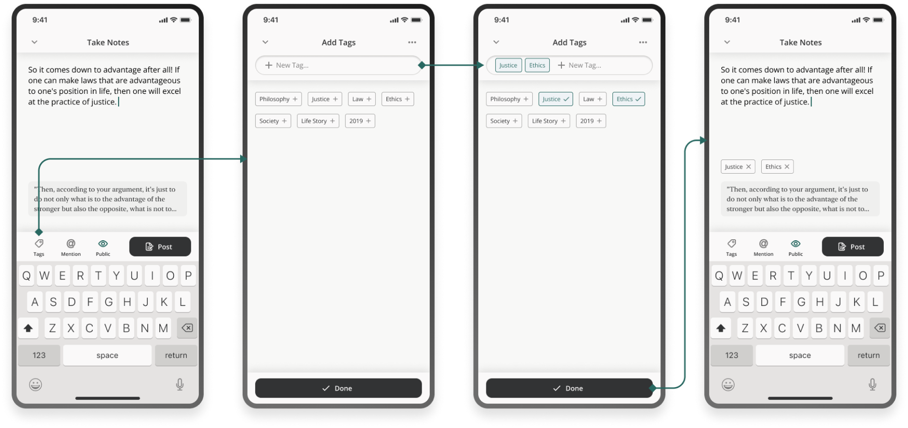 Tagging is an important system used to manage the notes. However I don't want the flow of adding tags to complicate the overall flow and add additional cognitive load to users. Therefore I managed to make it intuitive and optional. If users are not interested in adding tags, they will not feel interrupted at all.