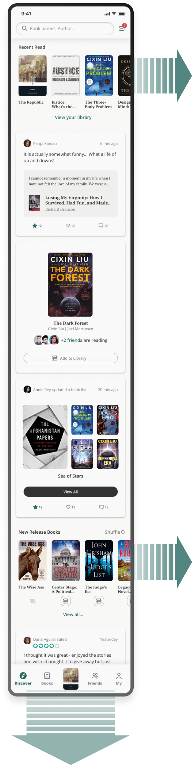 Re-structure the navigation bar to clearly demonstrate the “Reading with friends” idea.