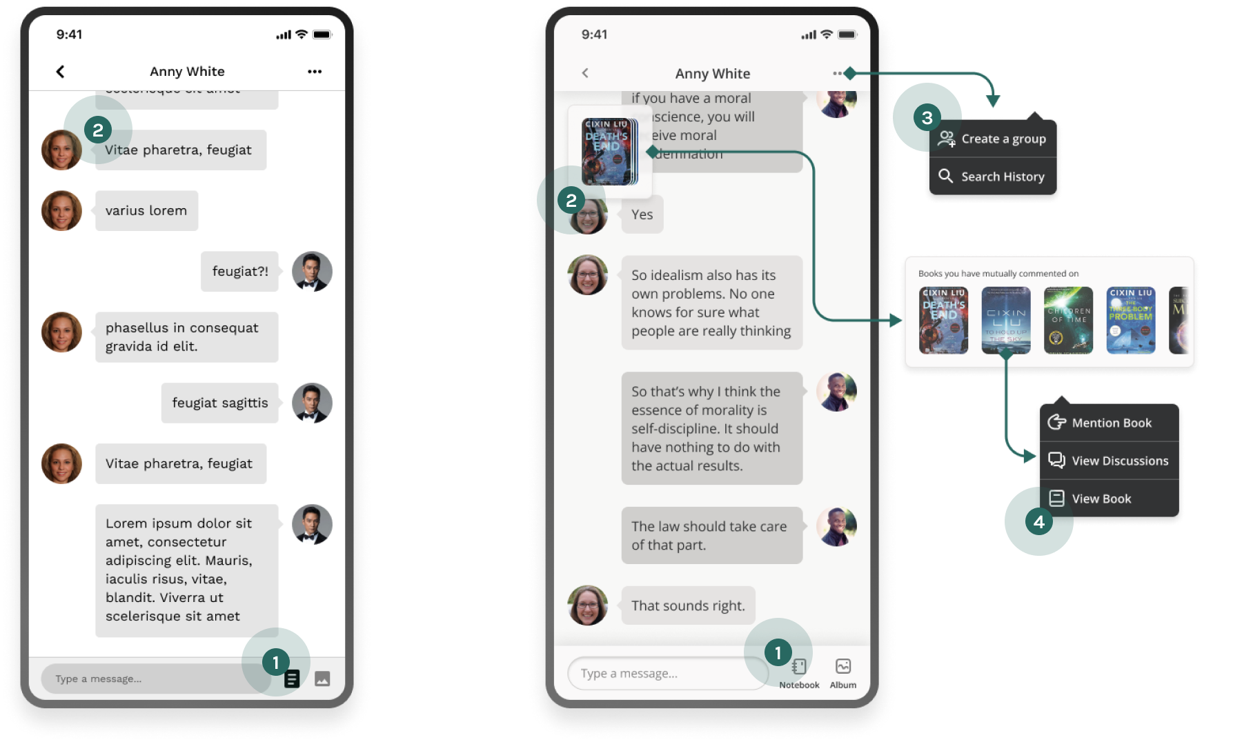 People mentioned in the user research that the discussion could be triggered in different ways. That means to make the discussion feature successful, users should feel easy and intuitive enough to get to either comment page or chat page from any screen, and be able to smoothly switch between comment and chat.